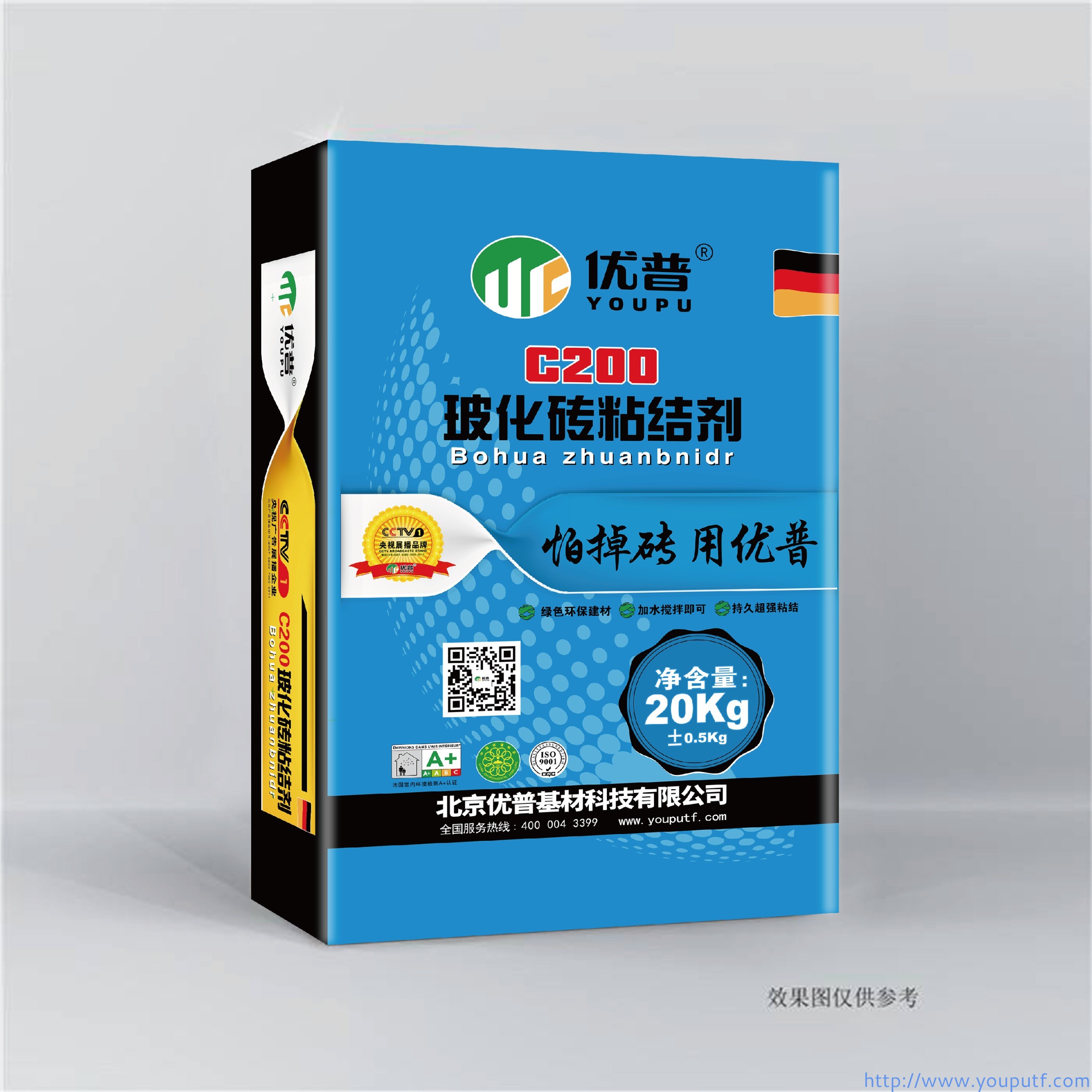 優普C2型玻化磚粘結劑(?;u專用),專為室內玻化磚鋪貼而設計,是精選優質天然無機礦物原料配制而成的砂漿產品。該產品能進行地磚上墻的鋪貼,其超強粘結力使低吸水率瓷磚的鋪貼更持久牢固。室內墻面鋪貼吸水率小于0.5%、尺寸不大于800mm×800mm的各種飾面磚。且產品通過法國A+室內環境質量認證,綠色安全,無懼掉磚。